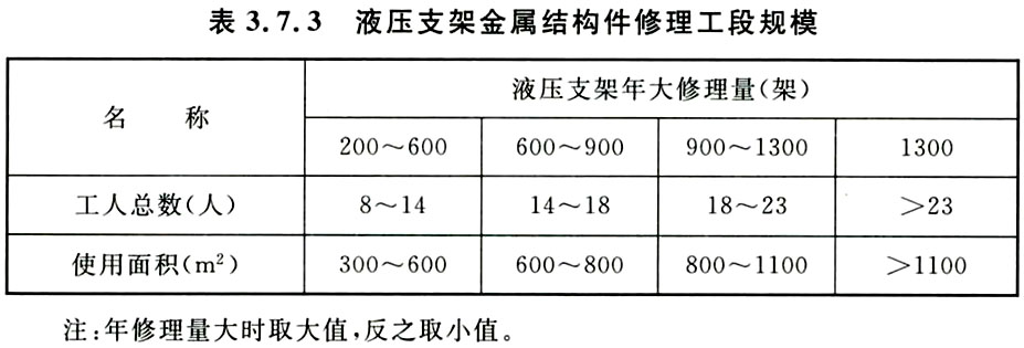 3当矿区液压支架年大修理量较大时,可单独设置液压支架(含单体液压支柱)修理车间;