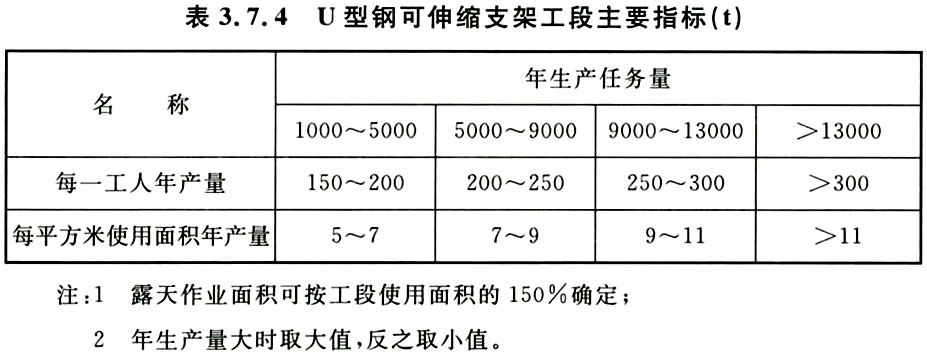 4U型钢可伸缩支架的制造量宜按矿井的掘进率和支架的使用年限计算。