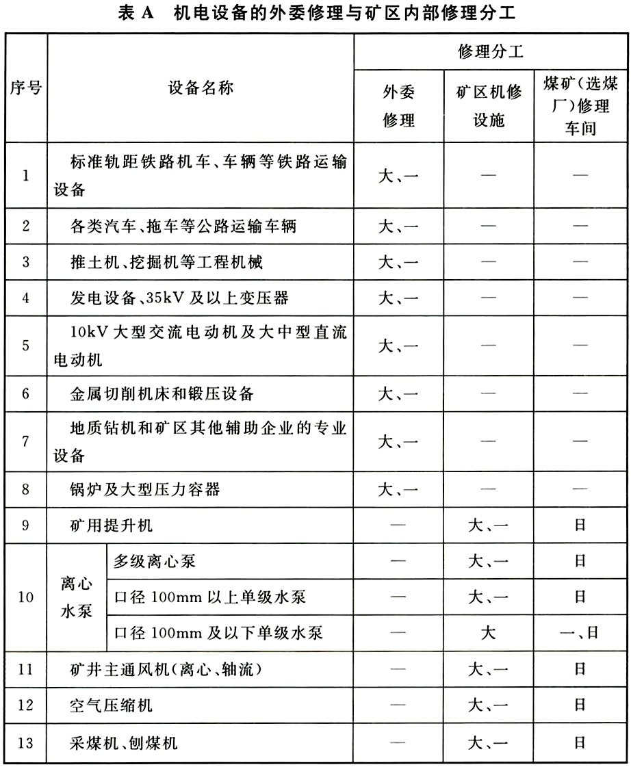 2.0.5矿区机电设备修理设施的修理任务范围宜按本标准附录A的规定执行。