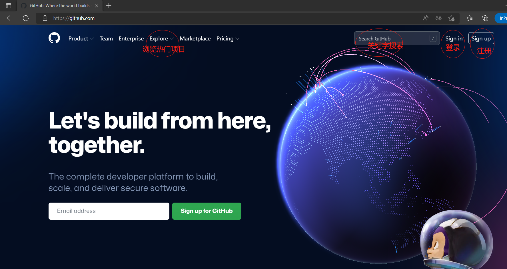 访问 GitHub 官网首先我们访问 GitHub 的官网首页 - https://github.com。