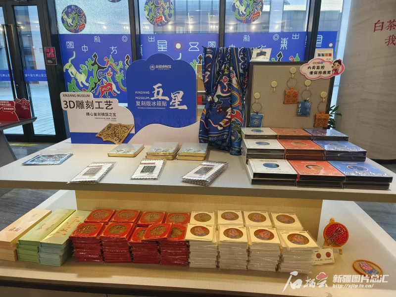 新疆博物馆文创大厅展示的“五星出东方”系列文创产品。