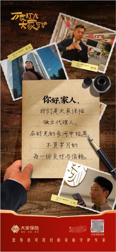 不止王杉,每位大家人寿独立代理人都无比珍视保险服务,将其视作对客户的长期守护。作为保险独立代理人领域的首个“探险家”,大家人寿坚守“守护”初心,经过三年发展,打造出了独具特色的独立代理人发展模式,以真挚之情、专业之智,为每个家庭点亮希望的灯火,温暖万千人心。