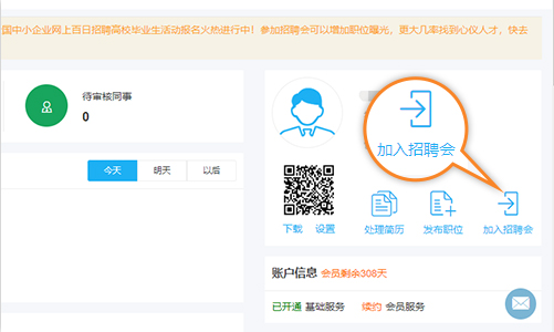 认证成功后,登录到控制台。点击控制台页面中二维码右侧的“加入招聘会”图标。