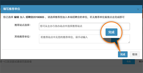 填写推荐您加入本场招聘会的单位,若无推荐单位直接点击完成即可。