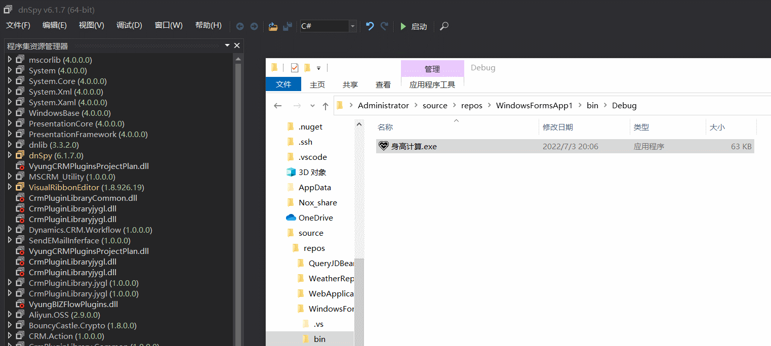 我们现在模拟陈依涵的代表作《身高计算器》,使用winform制作了一个身高计算的程序,我们用dnspy在没有源码的情况下,制作体重计算程序。