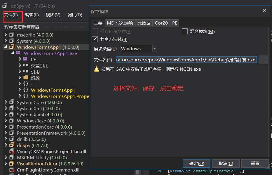 5、保存,这一步如果不保存,则不会对exe或者dll进行修改