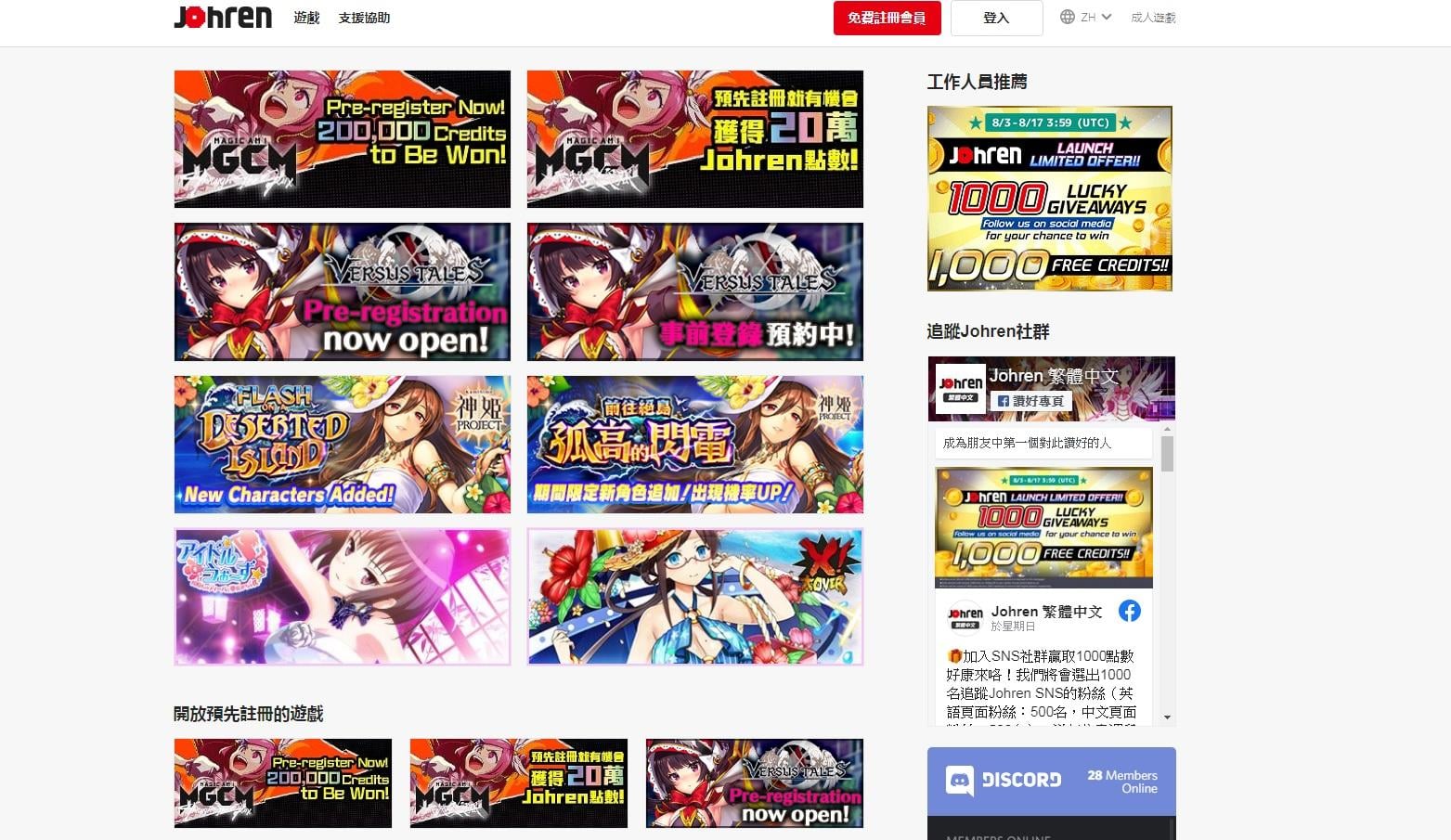 Johren 收錄了包括知名的《神姬計劃》,以及事將推出繁體中文版的《魔法少女Magicami》、《Versus Tales》(舊名:童話前線) 等多款 18 禁和一般版 F2P 遊戲,讓玩家們免費暢玩。