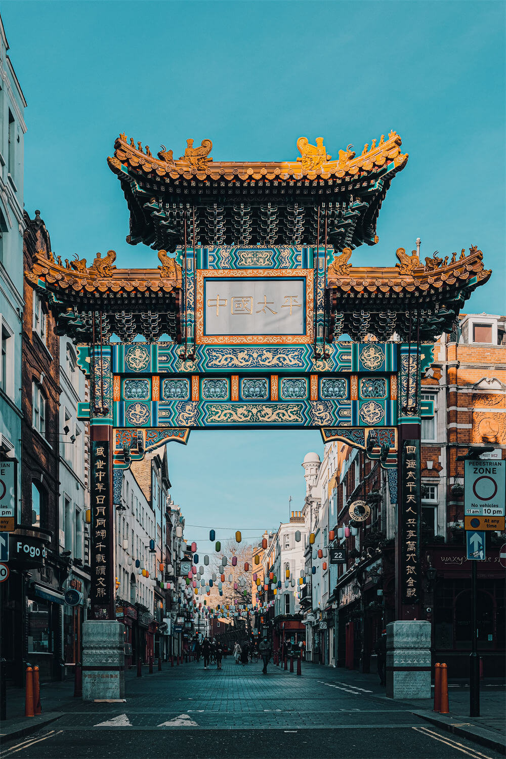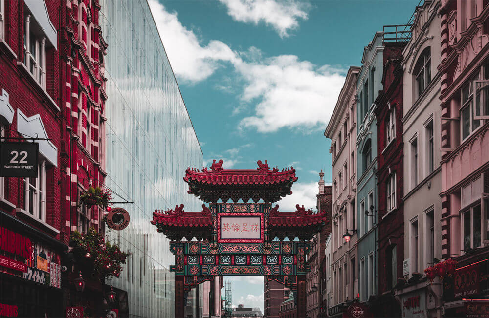 地理位置伦敦的唐人街不大,由一条大街和几条横街组成,距离白金汉宫和唐宁街10号首相府都不远。沿着唐宁街继续向前,200米不到,穿过著名的鸽子广场(特拉法加广场),路过国家画廊就到了。这里有标准的中式牌楼和汉风唐韵式的商亭。长约800米的主街两边各伫立着一个牌楼,上面写着"国泰民安"和"伦敦华阜"。街道两边的餐馆、商场、药店等都挂着显眼的汉字。由于语言和历史的原因,唐人街成了一个独立于英国社会的文化孤岛。现在的唐人街涵盖了华人生活各个方面的行业,如华人社区,食品超市、银行、旅行社、律师楼、会计师楼、图书馆等。伦敦的唐人街虽然不大,但很精致,像一碟材料简洁的菜肴,味道全在那一条主街和几条纵横交错的辅街里。