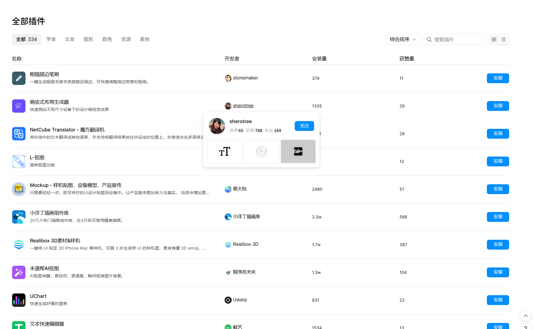 即时设计网页版同样开放插件生态,力求与设计师们共建效率化设计平台,插件广场内置了超过 300 种插件,包含字体、抠图、笔刷等多种超实用插件,点击下图即可直接进入插件广场👇