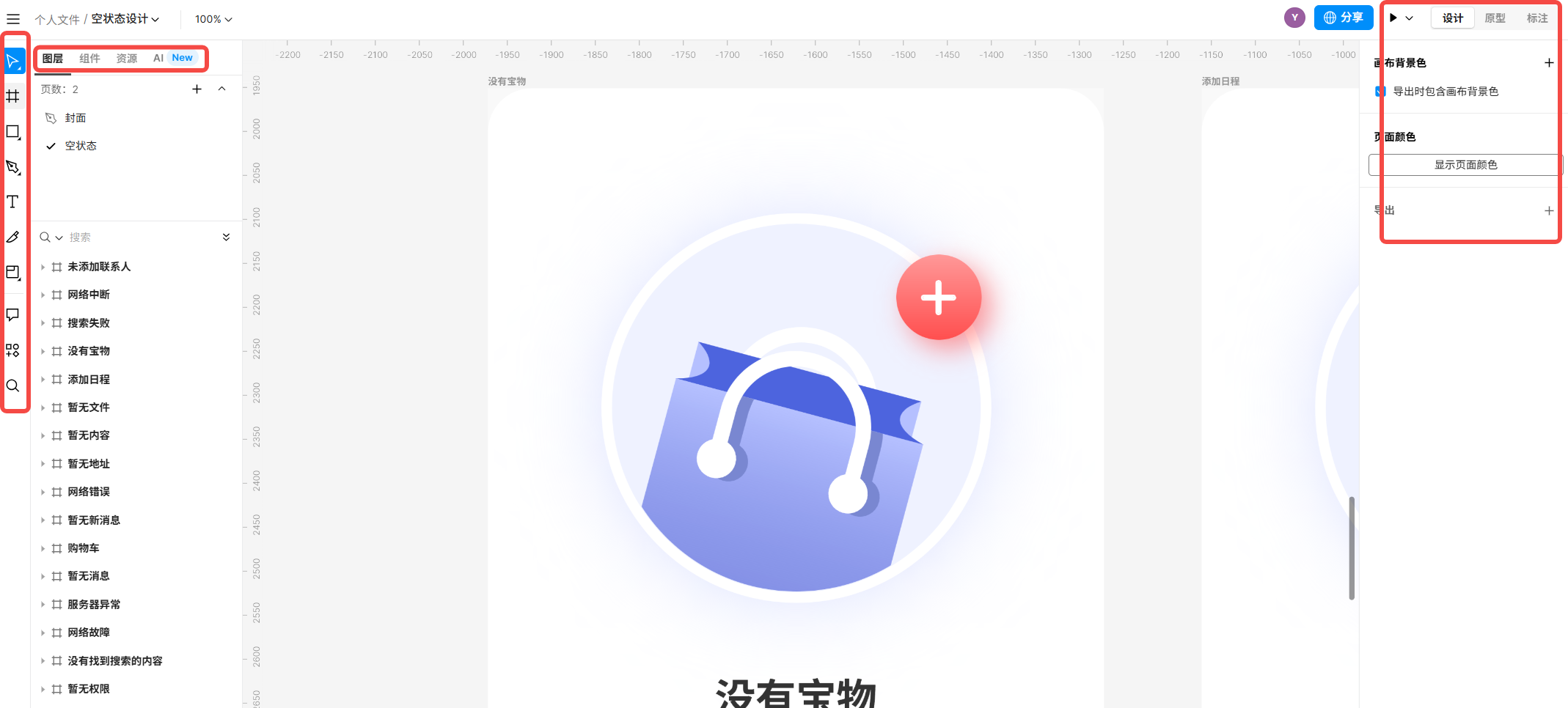 中间画布:这是设计师们的主要涉及区域,支持拖拽缩放与多画板切换