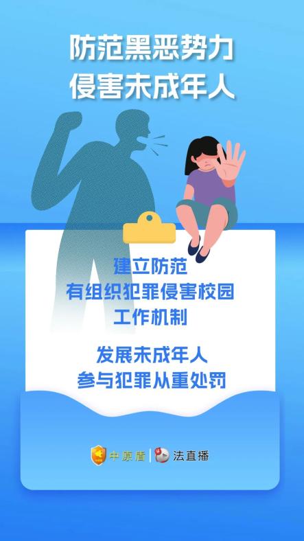 发展未成年人参加黑社会性质组织、境外的黑社会组织,教唆、诱骗未成年人实施有组织犯罪,或者实施有组织犯罪侵害未成年人合法权益的,依法从重追究刑事责任。(第六十七条)
