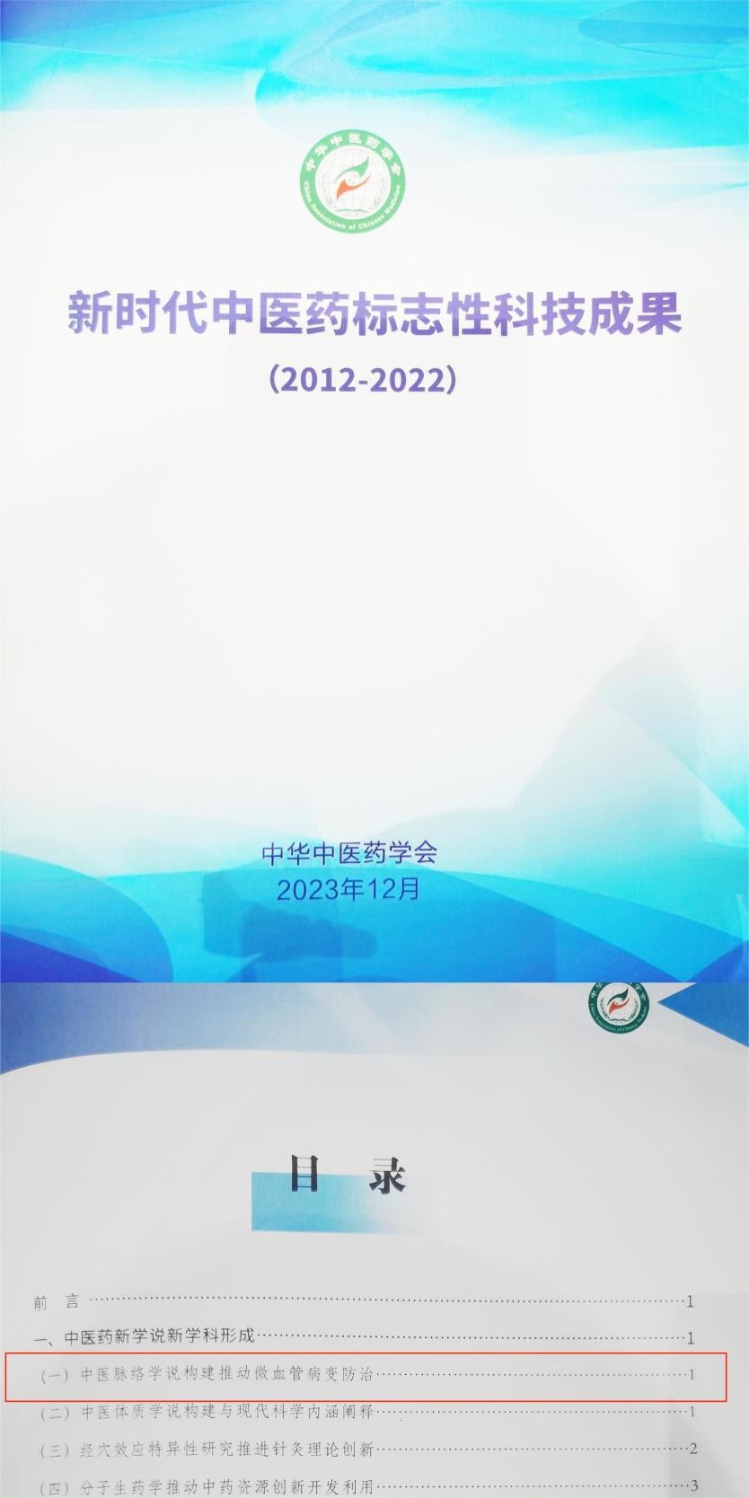 “中医脉络学说构建推动微血管病变防治”入选新时代中医药标志性科技成果(2012-2022)