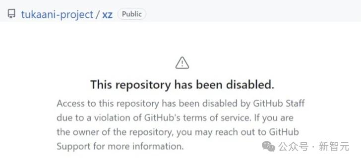 好在,这个后门已经及时被发现了。目前GitHub已经以违反服务条款为由,禁用了Tukaani项目维护的XZ Utils代码库。