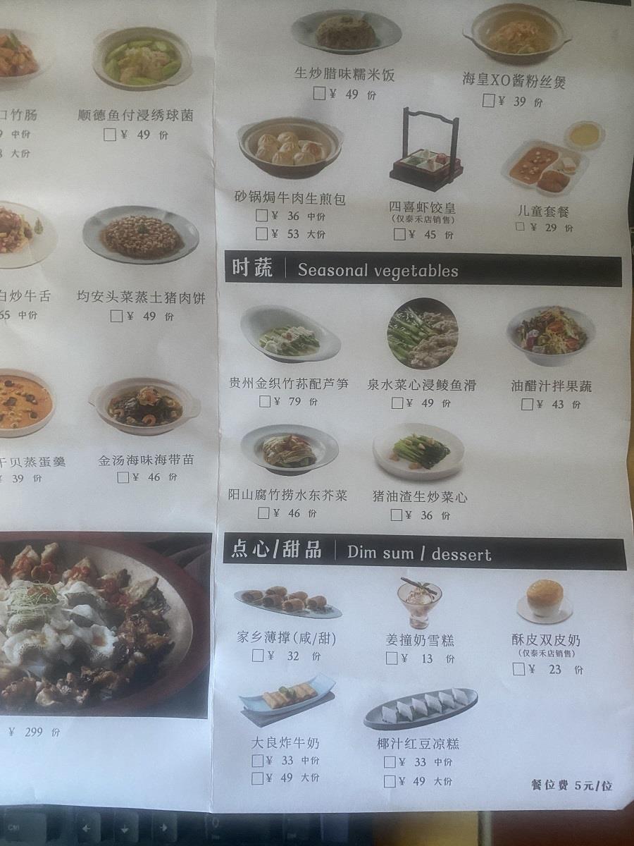 南乡广东顺德菜馆的菜单上,“餐位费”只有一行小字。
