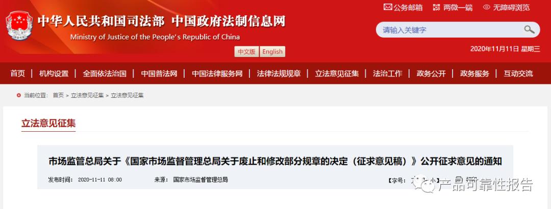 为进一步深化机构改革,优化营商环境,提升监管效能,市场监管总局起草了《国家市场监督管理总局关于废止和修改部分规章的决定(征求意见稿)》,现向社会公开征求意见。欢迎有关单位和个人提出修改意见,并于2020年12月10日前反馈市场监管总局。公众可以通过以下途径和方式提出意见。