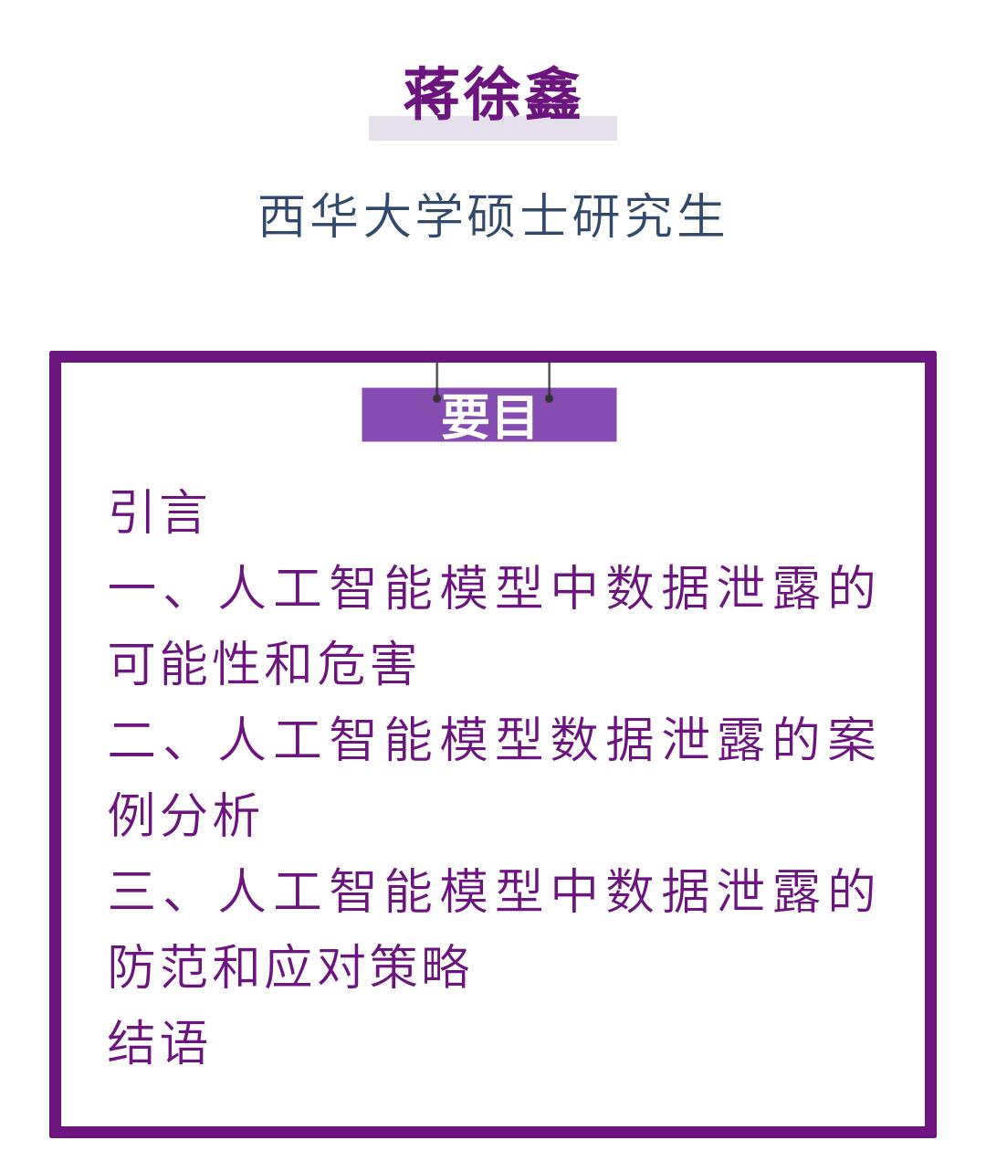 原标题:《蒋徐鑫|人工智能模型中数据泄露的法律风险防范》