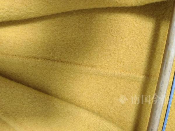 蔡女士认为衣服扩展修复后,崩线脱毛。记者廖艳明 摄