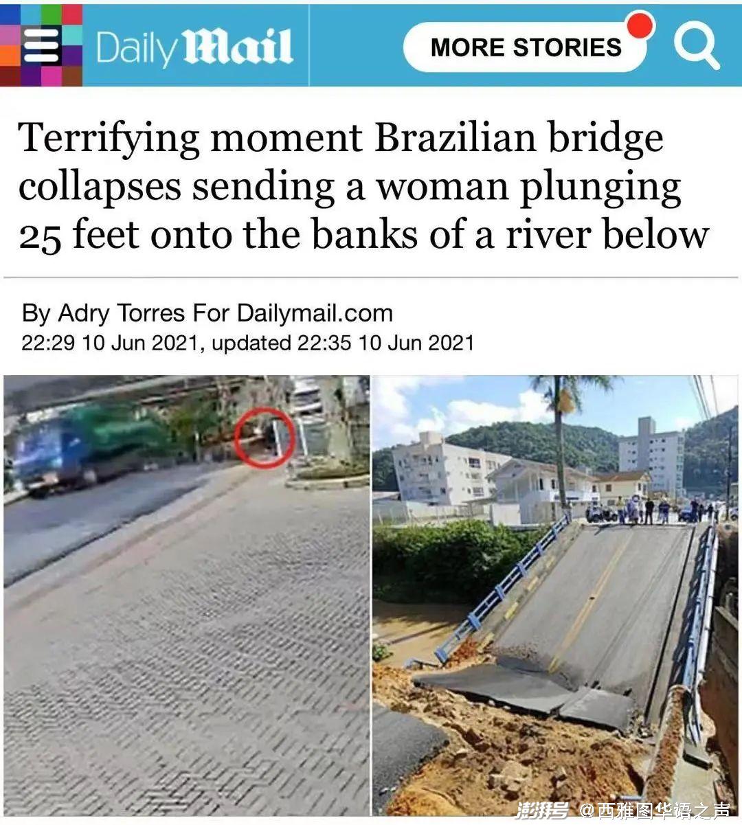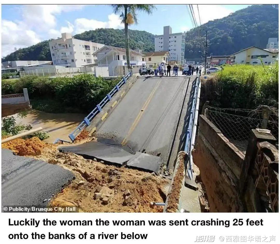 12、巴西一座桥突然断裂一女子掉落其中 一分钟后自己爬了上来