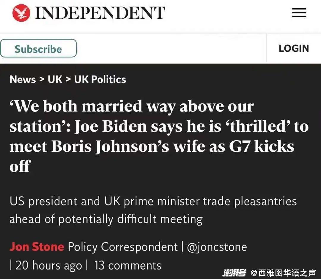 2、英首相美总统“四人约会”看海,拜登:我们都“高娶”了; 约翰逊:同意!