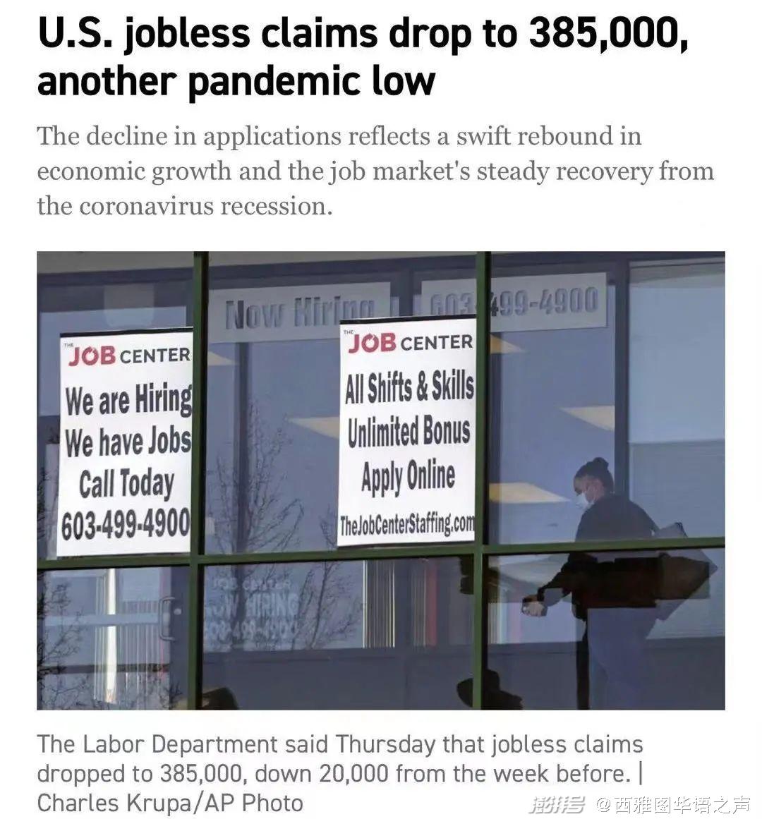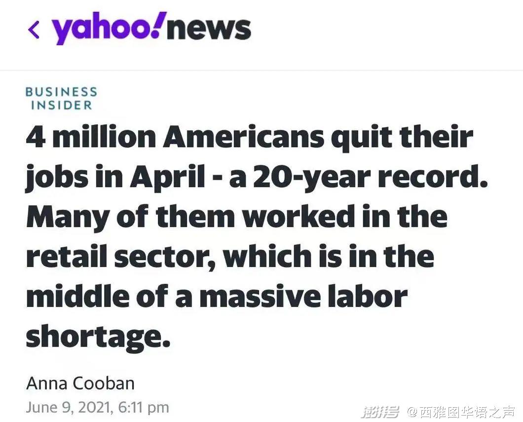 5、相信更好薪酬在“招手” 美国4月辞职人数创20年新高 38.5万人首申失业救济