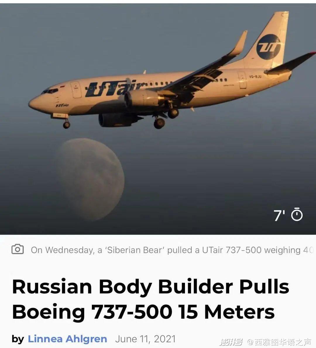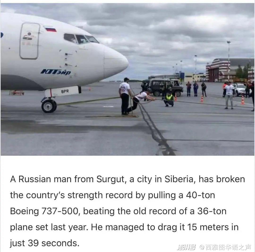 14、俄男子拉动40吨波音飞机破纪录 39秒内移动15米