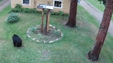 【综合讯】近日,美国明尼苏达州一户居民家发生了一件趣事:一只野熊被约克夏犬吓到爬树上。