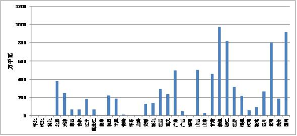 2014年,全国省级及以上统调机组上网电量4.27万亿千瓦时,江苏、广东以及山东统调机组上网电量位居前三,具体情况见图1-1。