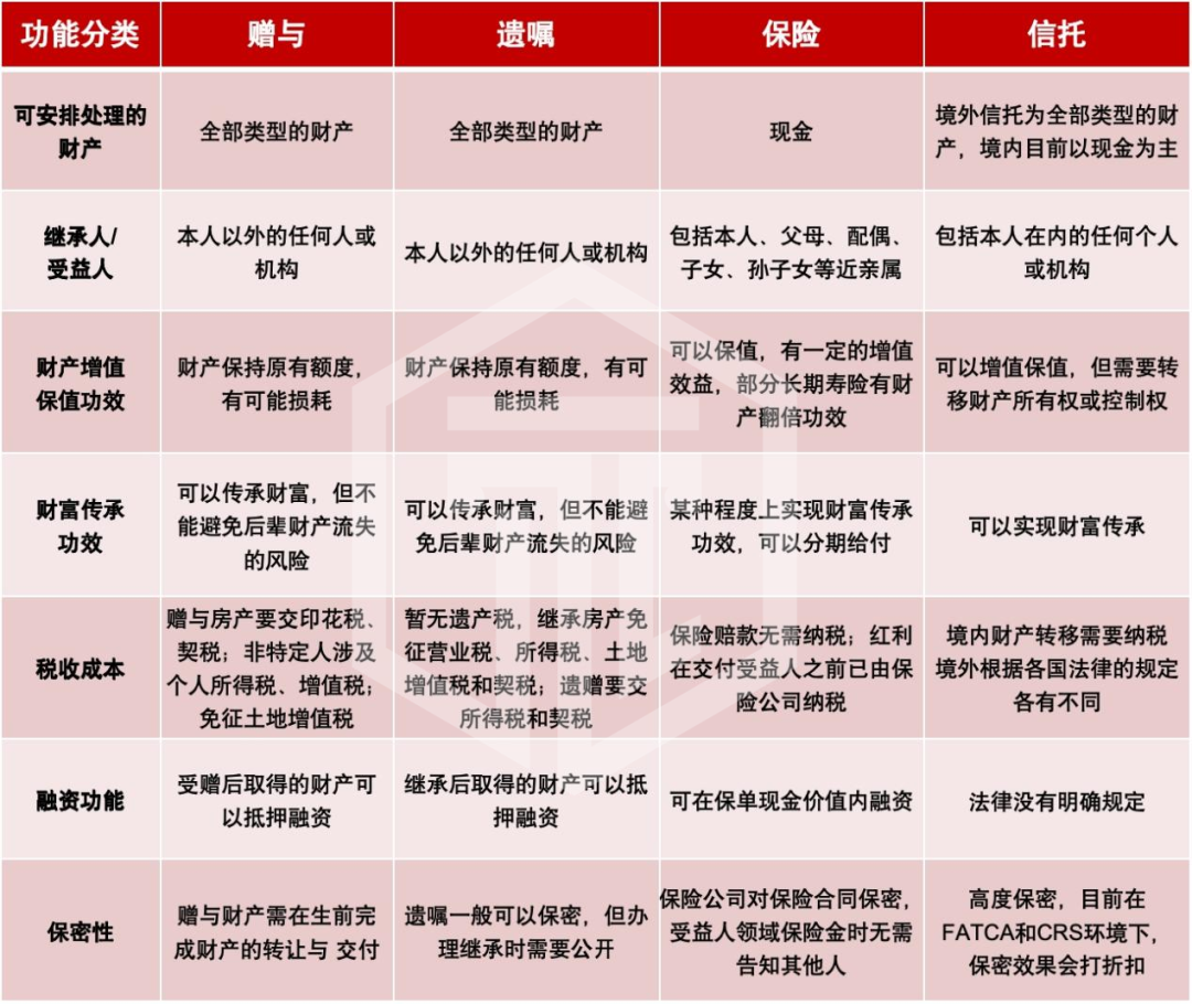 以上即为几种常用财富传承工具的对比与分析,我们可以结合自身情况进行传承规划的安排。