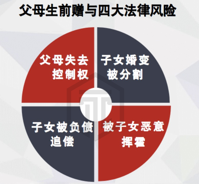 但从财富传承角度来看,赠与也同样存在着缺陷。一旦赠与行为完成,传承人会失去对财产的控制,若受赠人不孝或不尽赡养义务、发生婚变、缺乏驾驭财产的能力、对外负债或随意挥霍财产,都可能导致财产的流失。