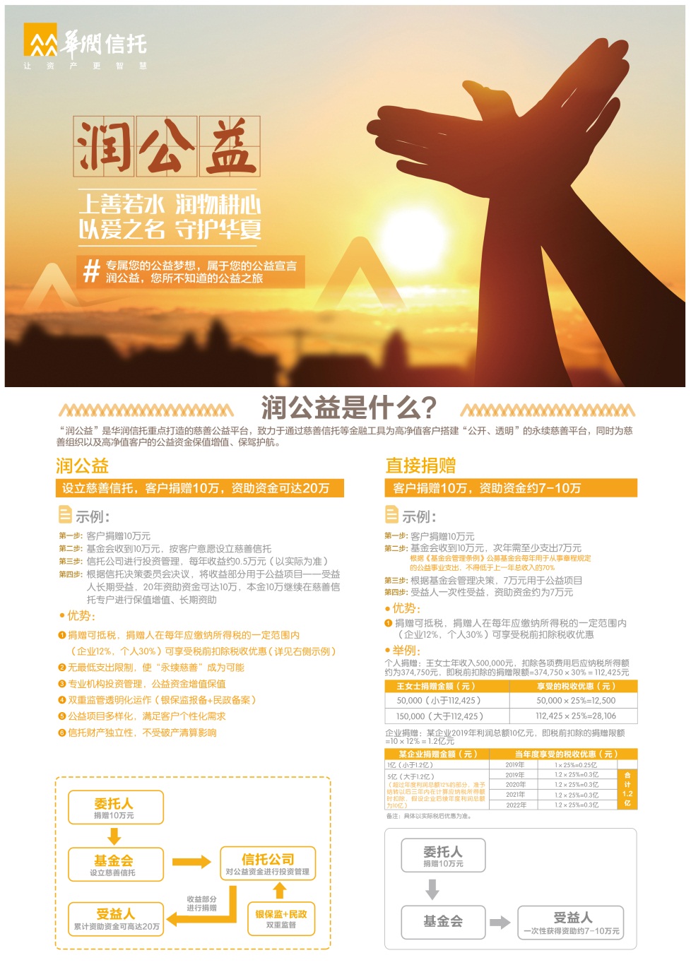 在慈善公益领域,华润信托在业界率先开拓公益服务“平台化”、慈善信托“母基金化”两大创新,于2018年设立主动管理的华润信托润心慈善信托”快速捐赠响应,与华润集团各业务板块积极联动,第一时间采购急需的医疗物资向武汉医院捐赠。