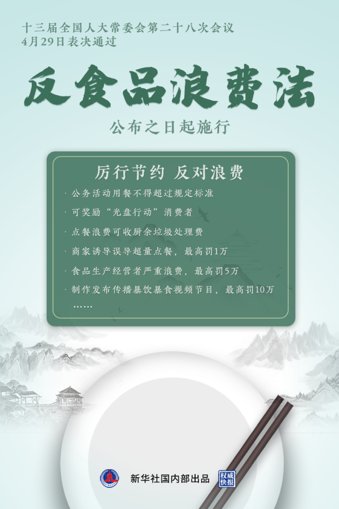 比如,针对公众反映强烈的餐饮行业突出问题,这部法律详细规定了餐饮服务经营者应当采取的防止食品浪费的措施,同时也对某些商家诱导误导超量点餐等行为作出明确处罚。