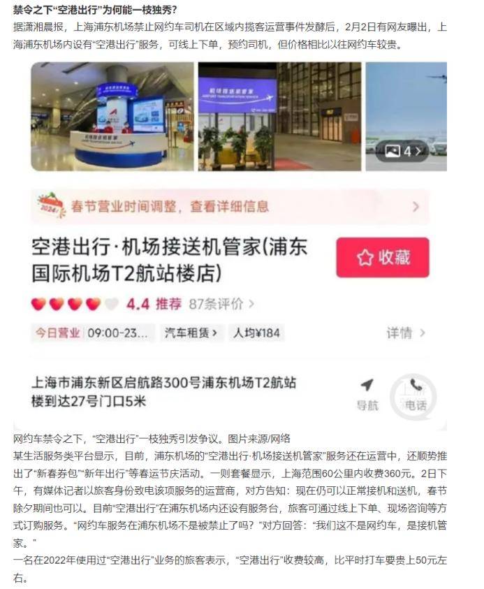 2月2日,有网友指出,一家名为“空港出行”的软件仍能提供服务,可线上下单,预约司机,但价格相比以往的网约车服务较贵,再次引发热议。