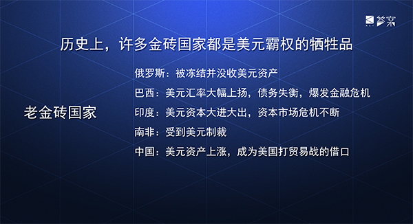 在历史上许多的金砖国家都是美元霸权的牺牲品。