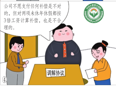 原来,这家公司的休假制度规定,员工工作满一年后,每年除法定年休假外,还可以申请享受3天福利年休假。崔某在2023年年初工作满一年,但是由于工作比较忙,当年他并没有申请过任何年休假,于是在辞职时提出了上述要求。蔡女士不知道关于未休法定年休假的补偿究竟如何计算,公司休假制度中也没有说明没休福利年休假如何补偿,她被难住了。在与崔某协商不成后,蔡女士给社区人社服务专员去电咨询,人社服务专员引导她找到了设在社区的劳动人事争议调解组织。调解员了解案情后告诉蔡女士和崔某,公司不愿支付任何补偿是不对的,但对两项未休年休假都按3倍工资计算补偿,也是不合理的。