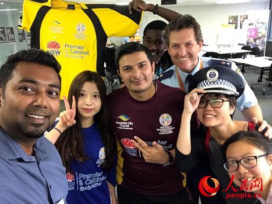 在新州警方进校园活动中警察和留学生们打起了乒乓球
