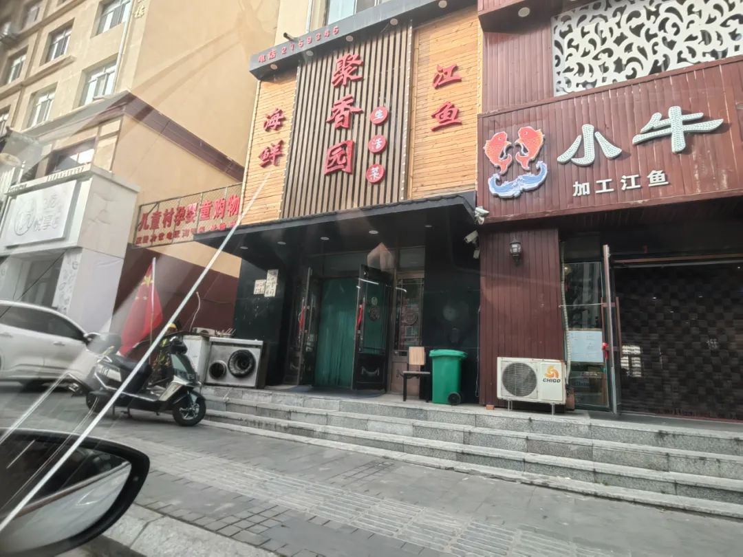 黄河路的聚香园生活菜馆,冰柜、椅子都摆在了门前,门面上还张贴着破旧的招聘广告。