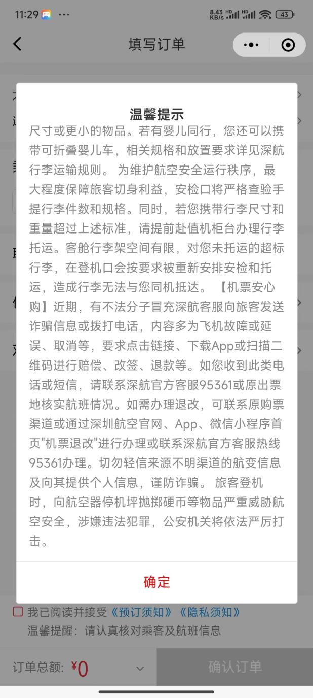 对此,记者打开深航小程序,进入订票界面时自动弹出《温馨提示》,未提醒消费者仔细查看航班的退改规则。记者查询深圳航空的相关规定发现,关于自愿变更,如果合计金额高于原客票所支付的金额,需要收取一定差额费用,同时收取变更手续费。如果该合计金额低于原客票所支付的金额,可以自愿退票另购新票。也可以选择维持原票价继续旅行,只收取变更手续费。