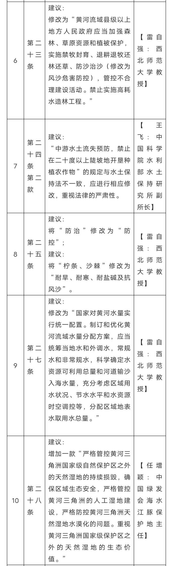 《黄河保护立法草案》(征求意见稿)详细条款修改意见表