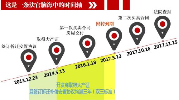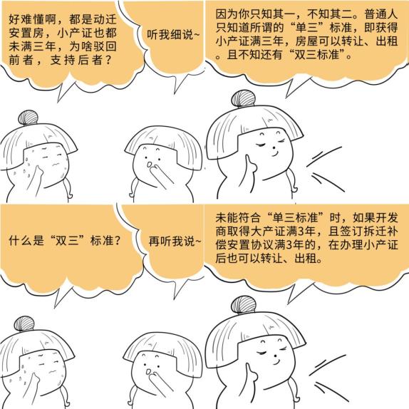 《上海市住房保障和房屋管理局关于动迁安置房提前上市交易有关问题的通知》 中详细规定了单三和双三标准。这也是从区别和平等对待居民动迁时获得的现房或期房安置房的考虑作出这样的规定。所以呢,法官在判断动迁安置房3年限转期是否届满时,也不会只简单地看房地产登记簿记载的小产证登记核准时间,还会查一下大产证登记核准时间和补偿安置协议签订时间后再作出判断。当然,如果房地产登记簿明确载明3年限转的起始时间的,则无需考虑是否符合“双3规定”的问题,即使案外人提出,根据“不动产登记公示公信”的原则,也不会支持异议。