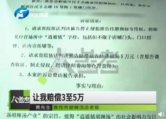 无独有偶,最近,河南知名小吃“逍遥镇胡辣汤”被推上了风口浪尖。因为门牌上写了“逍遥镇”三个字,河南省焦作市的多家逍遥镇胡辣汤商户突然收到了法院传票,而起诉他们的,是河南省周口市西华县的逍遥镇胡辣汤协会。