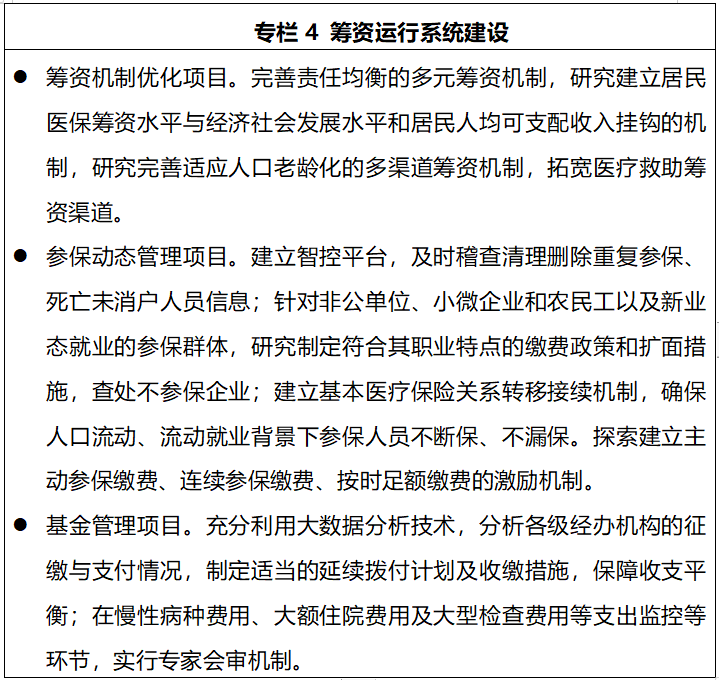——建设安全医保。统筹医保发展和安全管理,医保基金运行安全稳健、风险可控、管理方式不断创新。防范化解因病致贫、因病返贫的长效机制基本建立,有效衔接乡村振兴,医保安全网更加紧密。医疗保障信息平台安全运行,数据安全管理持续强化。