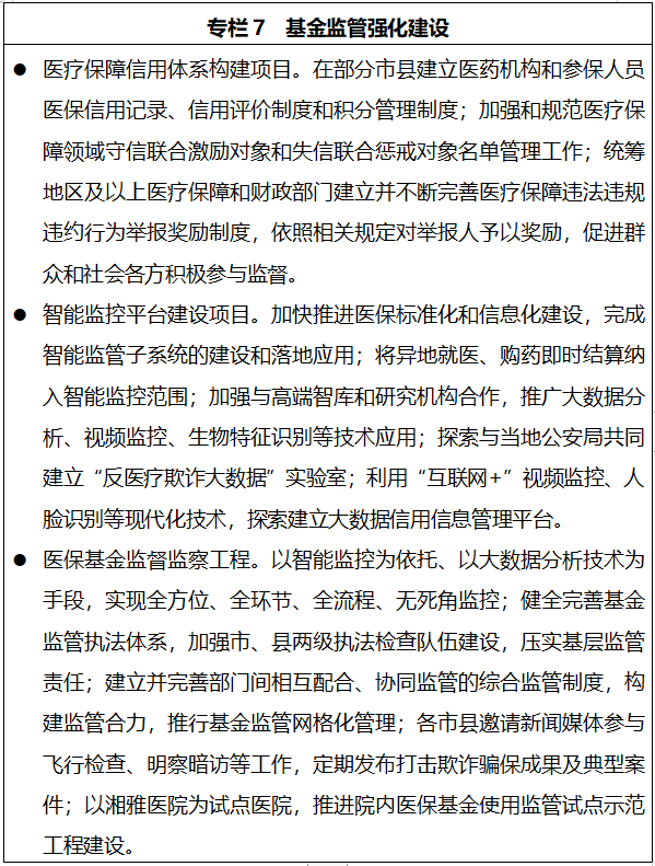 五是建立基金监管行政执法制度体系。长沙市医保、卫健、公安等职能部门成立全市医保联合监管执法队伍,创新实施“负面清单”“红黑榜”等制度,引入会计师事务所、信息公司等第三方力量监管,率先与公安局联合建立“反医疗欺诈大数据”实验室。我省基金监管工作成效显著,医药机构不敢骗、不想骗、不愿骗的监管格局初步形成,极大提高了基金安全程度,违规率不断下降。