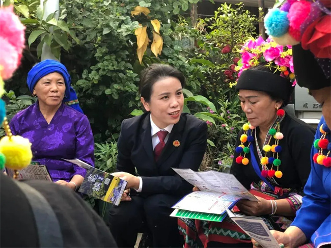 双语普法拉近了法律与村寨人的距离。在办案中,她也与当地群众的接触越来越多,被当地群众亲切地称作“喃滴溜”(傣语,意为“家里唯一的宝贝姑娘”)。