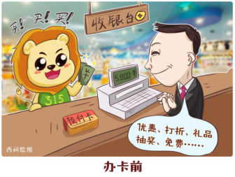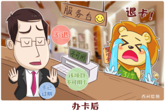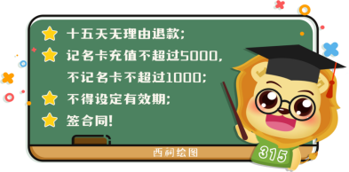 消费提示:消费者在选择办卡前一定要保持理性,根据自身需要理性办理,不要被商家的推销让利所诱惑,尽量选择金额小的预付卡,并尽快使用。