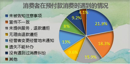 此外,在预付卡消费过程中,21.9%的消费者办卡时未被告知注意事项,18.3%认为商品或服务与宣传不一致,9.2%没有遇到过消费纠纷;8%因卡遗失不能补办。