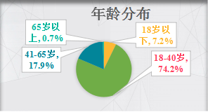 (一)消费者基本情况调查:85%的消费者办过预付卡,涉及领域最多的是美容美发、综合零售与健身行业。线上问卷调查显示,参与调查的消费者中男女比例分别为60.8%、39.2%。7.2%的消费者年龄在18以下,74.2%在18-40岁之间,17.9%在41-65岁之间,65岁以上的消费者仅占0.7%。从年龄分布的角度来看,消费群体以中青年为主。