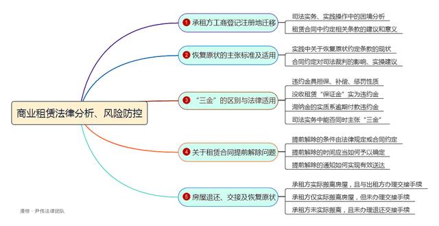 随着经济社会快速发展,商业地产租赁合同纠纷常常见诸报端。新年伊始的新冠肺炎疫情,更是让商业地产租赁市场动荡陡增。结合新冠疫情下的现实情境和相关法规政策、司法观点,本文分别从商业租赁“三金”问题、租赁合同合规解除、房屋交还风险把控、工商注册地址迁移以及房屋恢复原状权益保障等五大常见争点出发,分享司法实务经验,梳理分析涉及商业地产租赁的法律观点,并向业者提出风险防控建议。