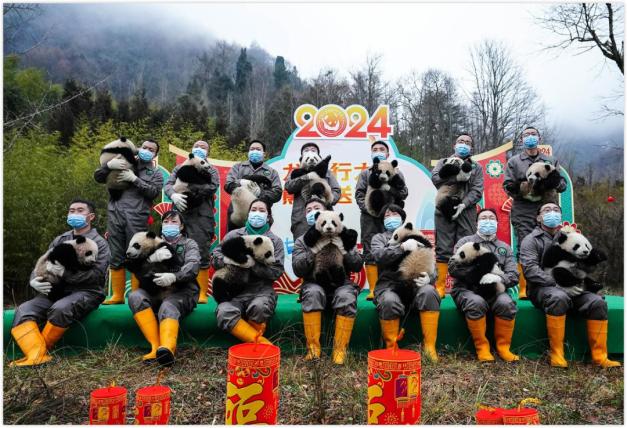 1.团子们给大家拜年啦!2023级新生熊猫贺新春:春节前夕,中国大熊猫保护研究中心和成都大熊猫繁育研究基地联合举办“龙年行大运 熊猫送福来”新春主题活动,2023年新生大熊猫宝宝集体亮相。据了解,两家机构2023年共成功繁育大熊猫34只,半岁左右的大熊猫宝宝成长状态良好,萌态十足。有这么多可爱又萌萌的团子,相信大家新的一年一定能所“Pan”都可“Da”!(央视新闻)
