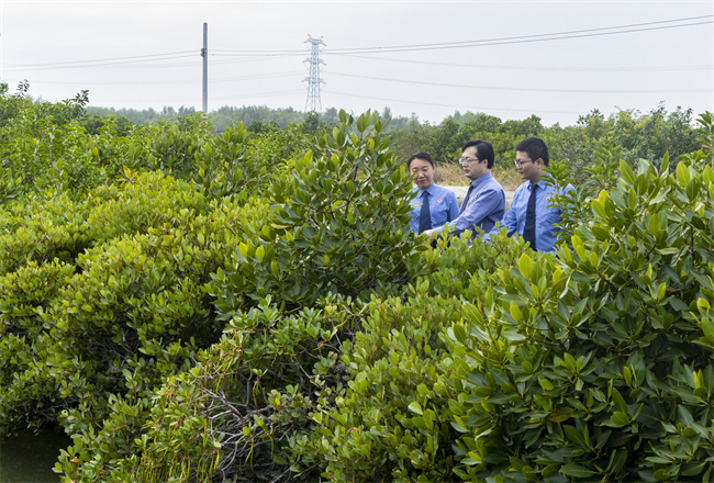 2022年9月,湛江市麻章区检察院检察官调研辖区红树林保护情况。