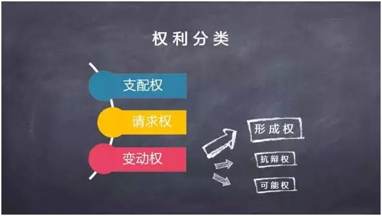 3.变动权:形成权、抗辩权和可能权。形成权:权利人可以单方意思表示而设定、变更或者消灭法律关系的权利。
